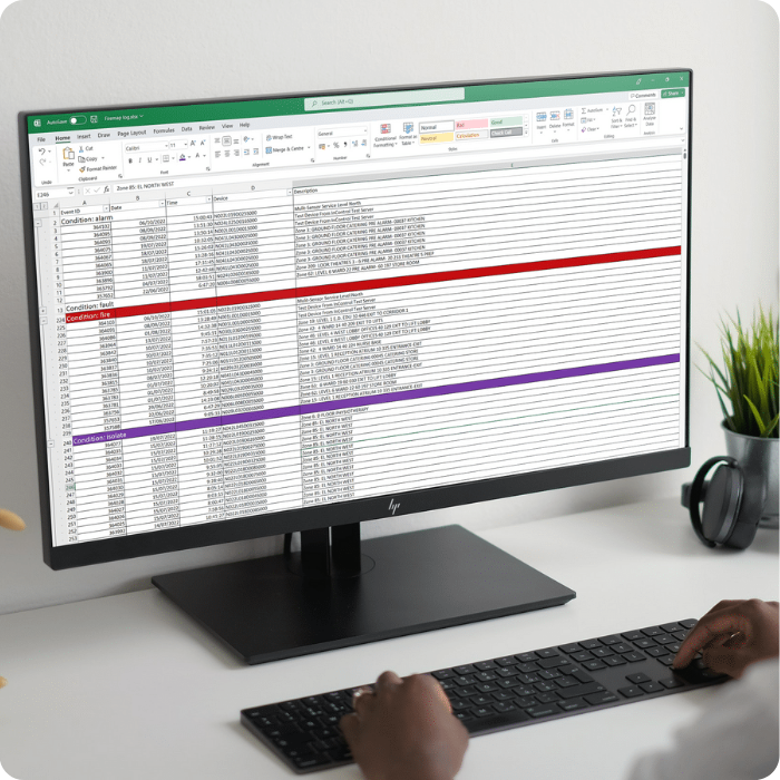 Access Fire Alarm logs and events remotely. Export logs to Microsoft Excel for analysis on your desktop or laptop PC.